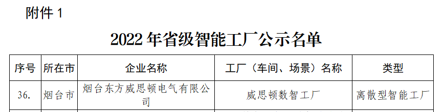 日前,山东省工信厅对2022年山东省智能工厂名单进行了公示,一号娱乐电子旗下威思顿电气的“威思顿数智工厂”成功入选。