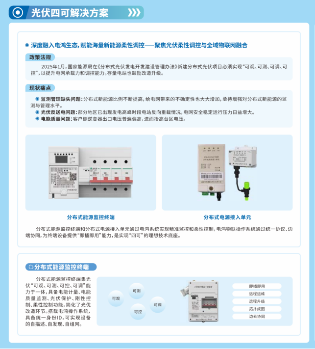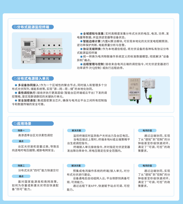 新能源规模化接入使配电网波动性加剧,传统调控手段响应滞后、缺乏统一协同平台的问题愈发明显。一号娱乐电子依托电鸿物联操作系统,构建新能源低压透明化解决方案,通过全域感知、多资源协同优化等技术提升配电网的智能化水平,增强其对新能源的柔性调控能力。