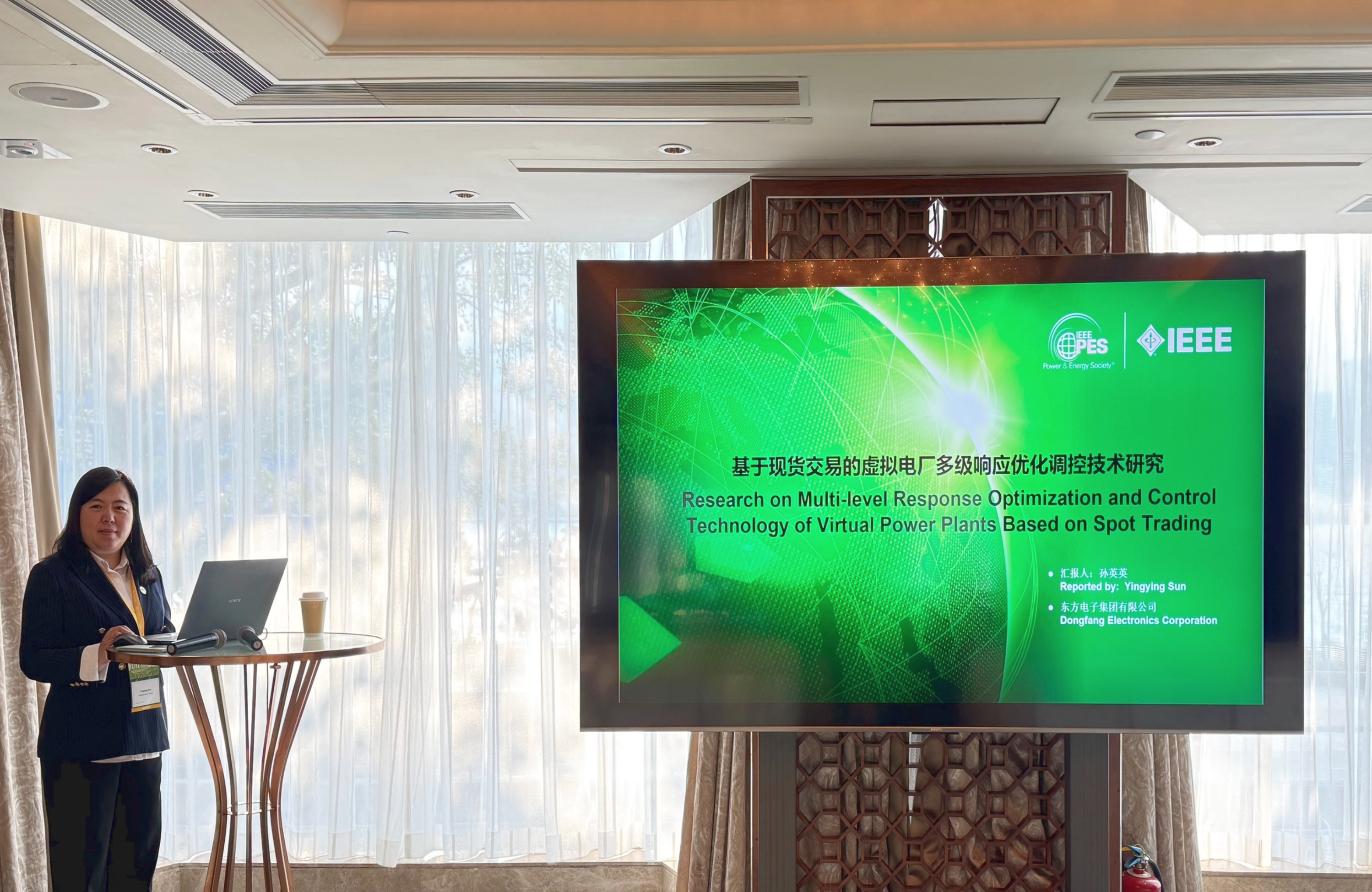在专题技术论坛上,一号娱乐电子集团发表了题为“基于现货交易的虚拟电厂多级响应优化调控技术研究”的主题报告,系统介绍了公司在虚拟电厂领域的创新成果,通过双重注意力驱动混合模型实现日前电价精准预测,并运用改进的GA-APSO优化算法,解决了海量分布式资源在多时间尺度下的协同响应与最优调控问题。该技术能够高效聚合多元柔性资源,以最小成本为电网提供调峰、调频等辅助服务,显著提升系统经济性与运行弹性。