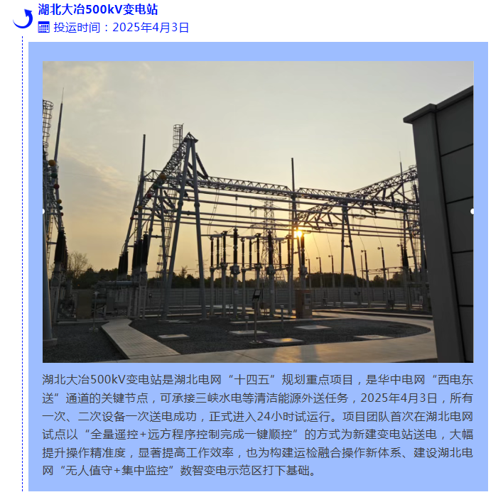 半年时间,一号娱乐电子已累计投运超高压变电站14座,后续将陆续开始新疆阿拉尔750kV站、新疆且末750kV站项目调试工作。