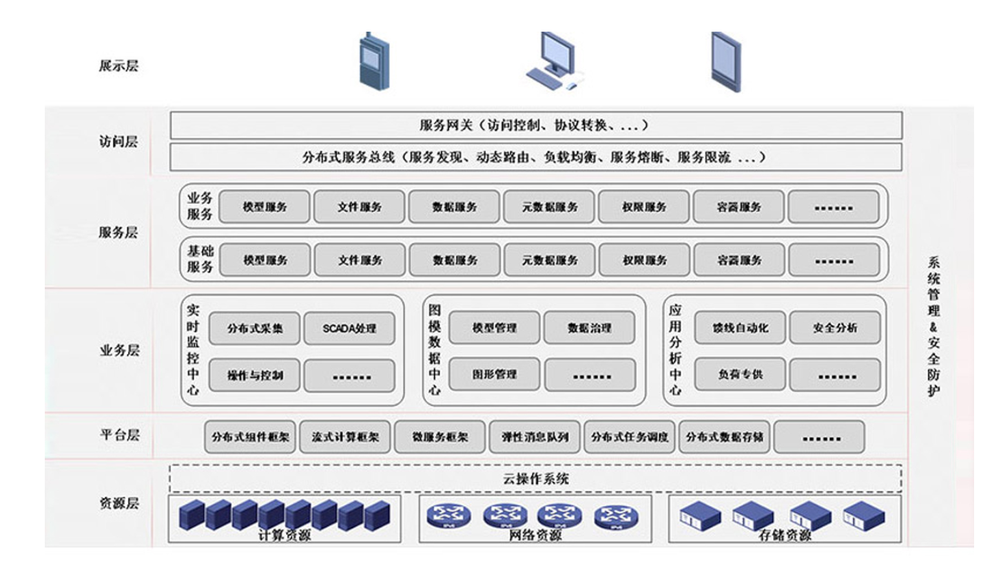 弹性调控支撑平台是基于“云原生”先进设计理念,利用容器、容器编排、微服务及服务网格等技术重构传统平台架构,建立与云计算相适应的数据处理模式与应用支撑框架。平台打破传统监控类软件集中或分组式主备处理模式,实现集群式并行处理模式,为应用系统提供了数据采集、处理及业务的动态扩展能力。 资源层:提供系统运行所需的物理或虚拟资源,分别对应于常规部署及云计算部署两种模式。在云计算部署模式下,虚拟资源将通过云操作系统进行统一调度管理。